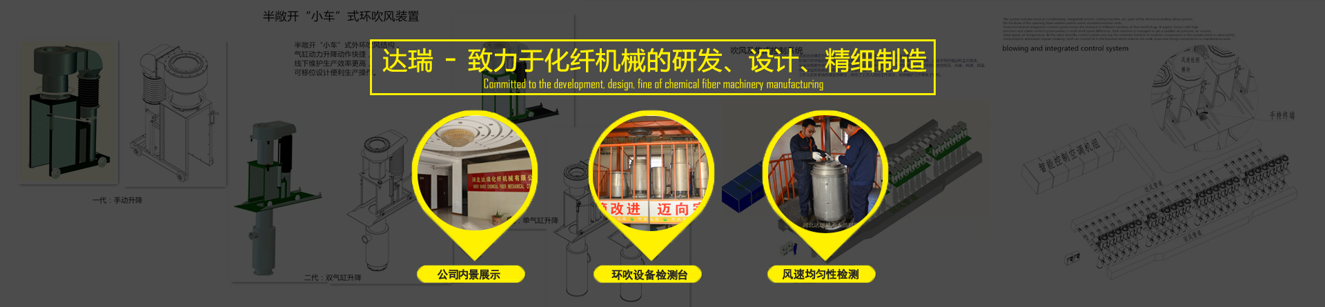 河北達(dá)瑞化纖機(jī)械有限公司,自2004年注冊(cè)成立以來,已為國內(nèi)、外百余家大中型化纖企業(yè)和工程公司提供了產(chǎn)品或服務(wù)。公司致力于化纖機(jī)械的研發(fā)設(shè)計(jì)和精細(xì)制造。憑借多年行業(yè)經(jīng)驗(yàn)積累,公司擁有了一支設(shè)計(jì)及生產(chǎn)現(xiàn)場經(jīng)驗(yàn)豐富的技術(shù)團(tuán)隊(duì)和高水平員工隊(duì)伍。特別是本公司生產(chǎn)的“絲束冷卻吹風(fēng)裝置”及相關(guān)設(shè)備得到了國內(nèi)外用戶的高度認(rèn)可,具有很強(qiáng)的競爭優(yōu)勢(shì)。……